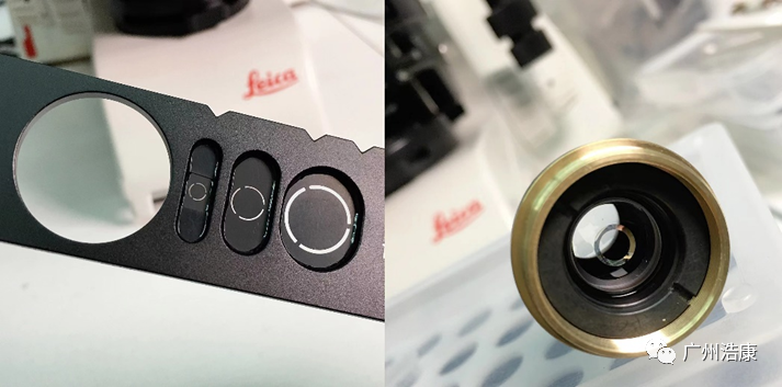 4.從低倍鏡開始觀察,調(diào)節(jié)到與鏡頭相匹配的相差環(huán),熒光濾塊調(diào)到空檔的位置