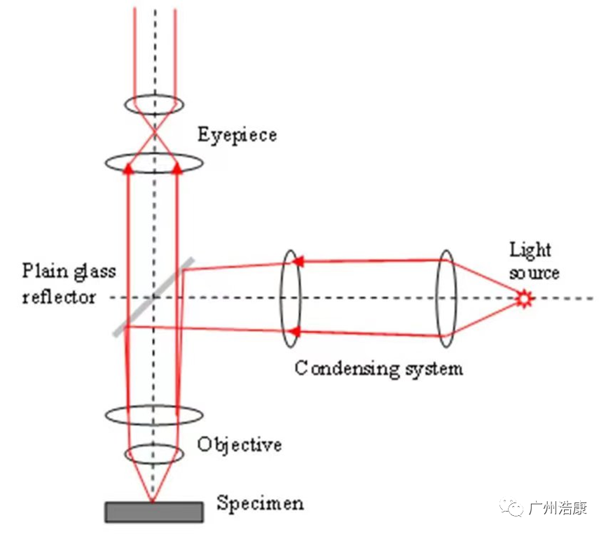 因?yàn)楣獠荒芡ㄟ^金相標(biāo)本,它必須被照射到表面上,并最終通過鏡面反射或漫反射返回顯微鏡物鏡,與穿過樣本的透射照明相比,這種照明最常被稱為垂直照明。