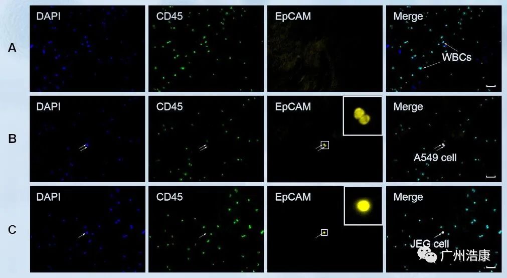 循環(huán)腫瘤細胞(CTC)通常具有非典型性的細胞形態(tài),一般比血液細胞,正常組織細胞體積大;細胞核大,不規(guī)則,細胞核質(zhì)比高;不易發(fā)生變形。