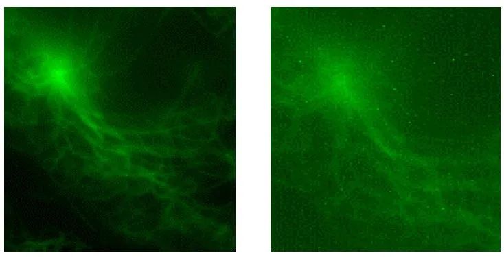 不過(guò),在許多實(shí)際應(yīng)用尤其是活細(xì)胞成像中,為了避免光漂白、光毒性,或是為了提高速度,曝光時(shí)間很短,激發(fā)光強(qiáng)度也相對(duì)較弱,信號(hào)常常處在相對(duì)較低的水平。這時(shí),信噪比位于讀出噪聲控制的區(qū)域,讀出噪聲對(duì)信噪比的影響比較大。相機(jī)靈敏度相同時(shí),讀出噪聲越低,信噪比越高。