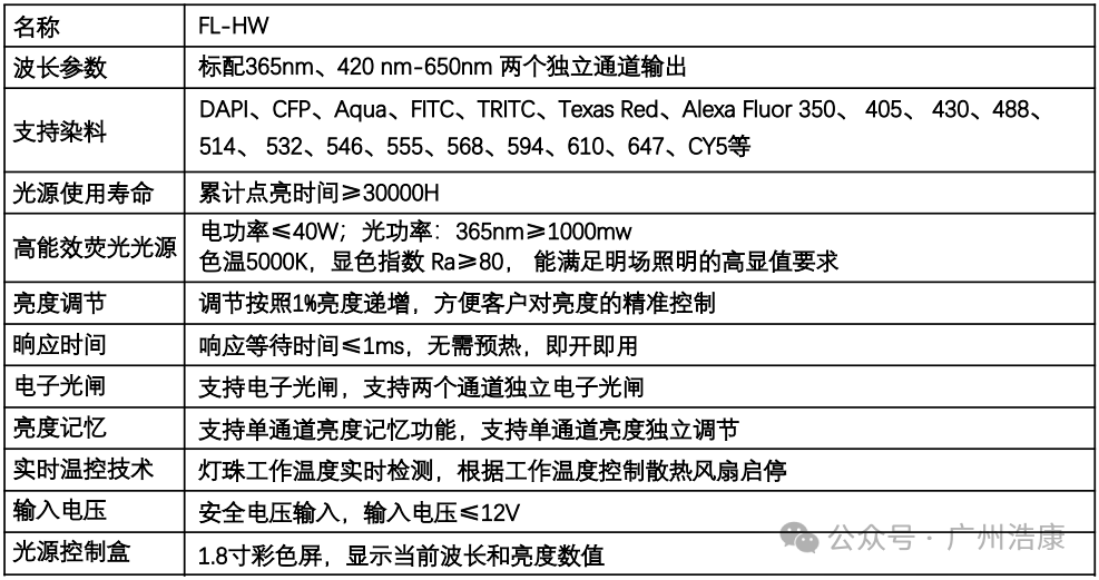 浩康生物大功率LED熒光光源FL-HW是專為替代泵燈開發(fā)的寬光譜LED光源,產(chǎn)品壽命長、 環(huán)保節(jié)能、 可控性強(qiáng)且照明均勻。